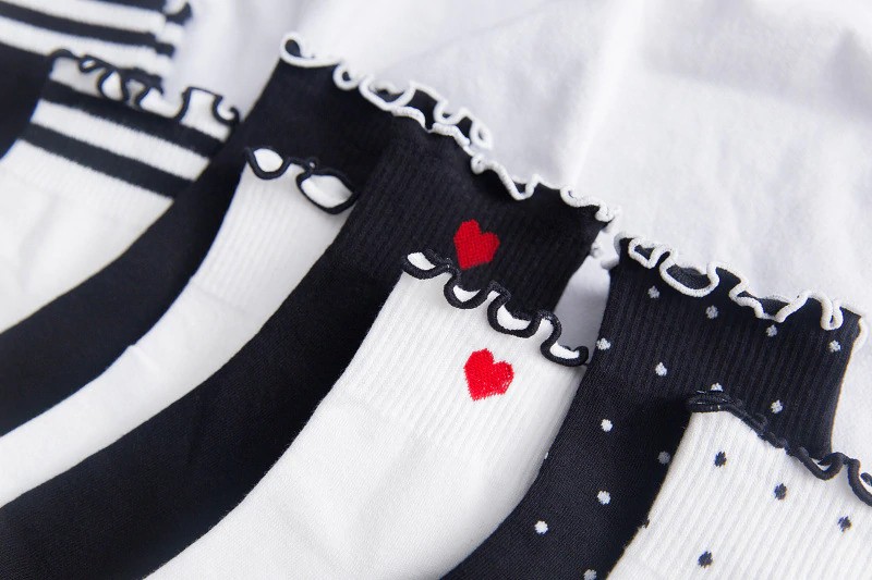 Η άκρη των καλτσών διακοσμείται με φρου φρου.