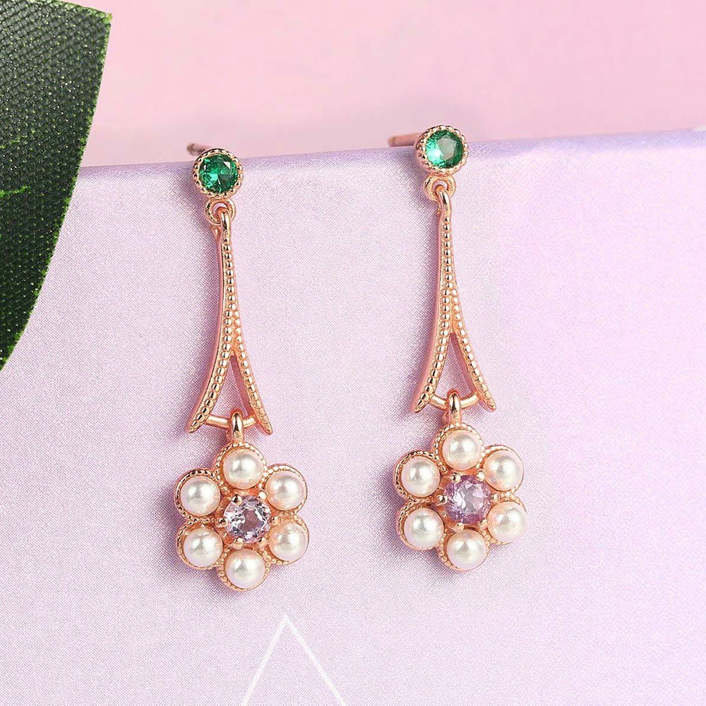 Γυναικείες κρεμαστές σκουλαρίκια με πετράδια και πέρλες