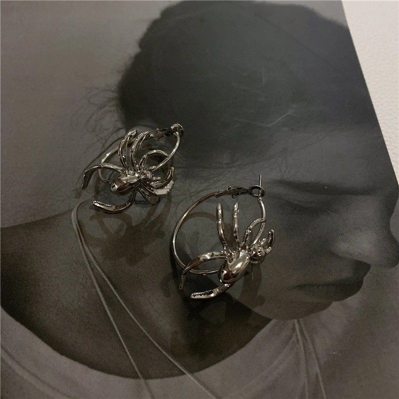 Γυναικείες κυκλικές σκουλαρίκια με αράχνη