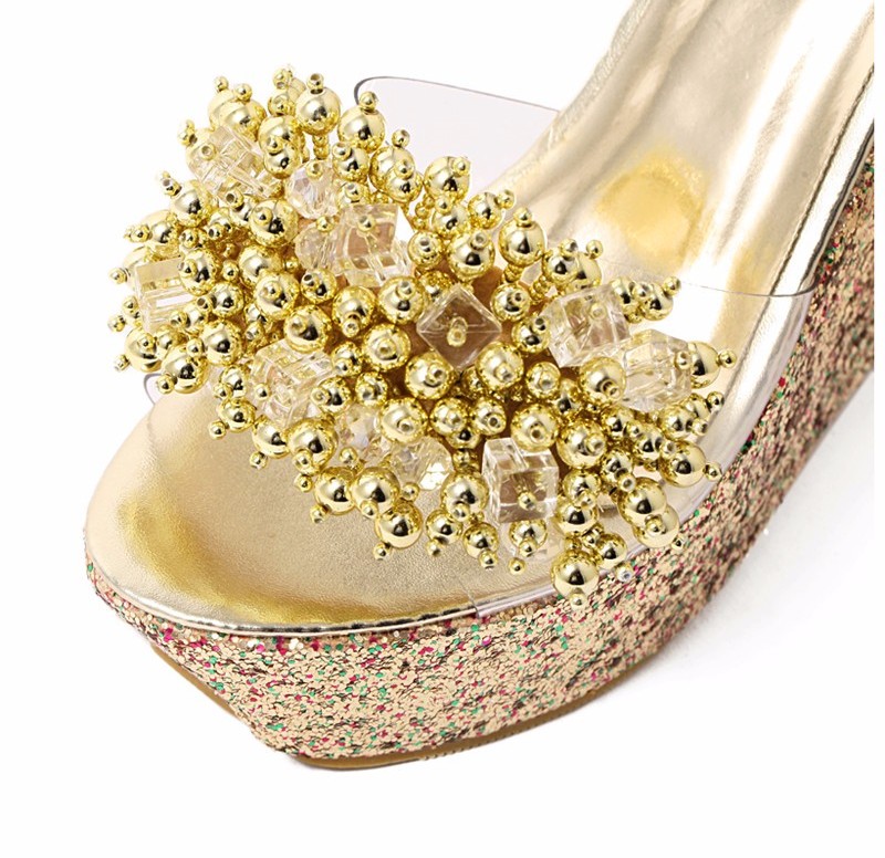 Γυναικείες λαμπερές παντόφλες με ψηλή πλατφόρμα και διακόσμηση