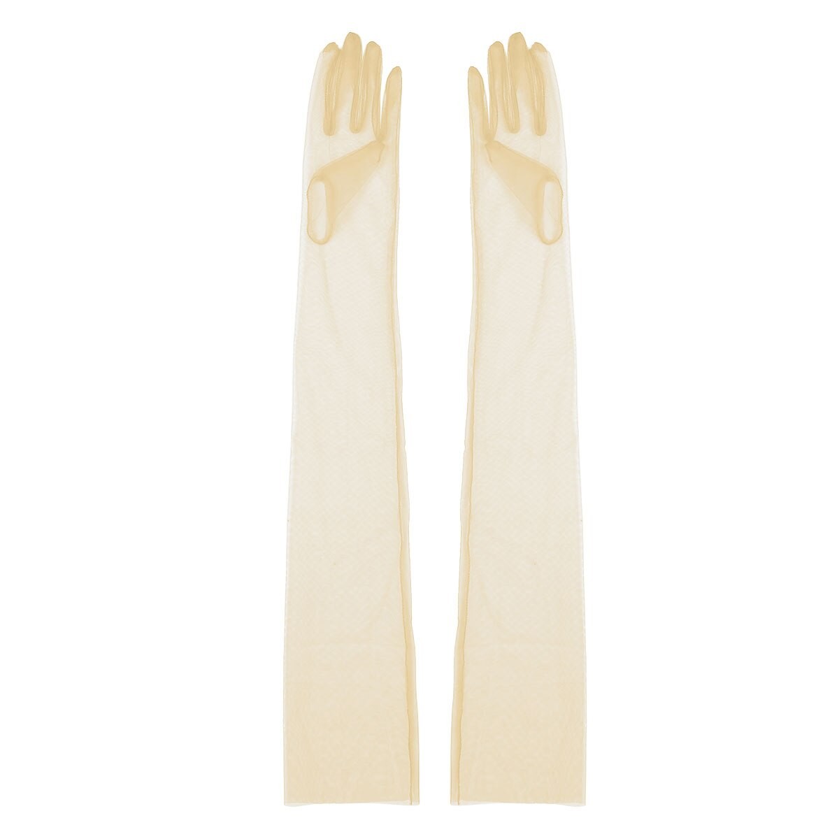 Μακριά γάντια από διάφανο τούλινο υλικό.