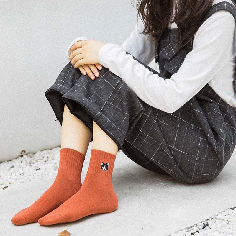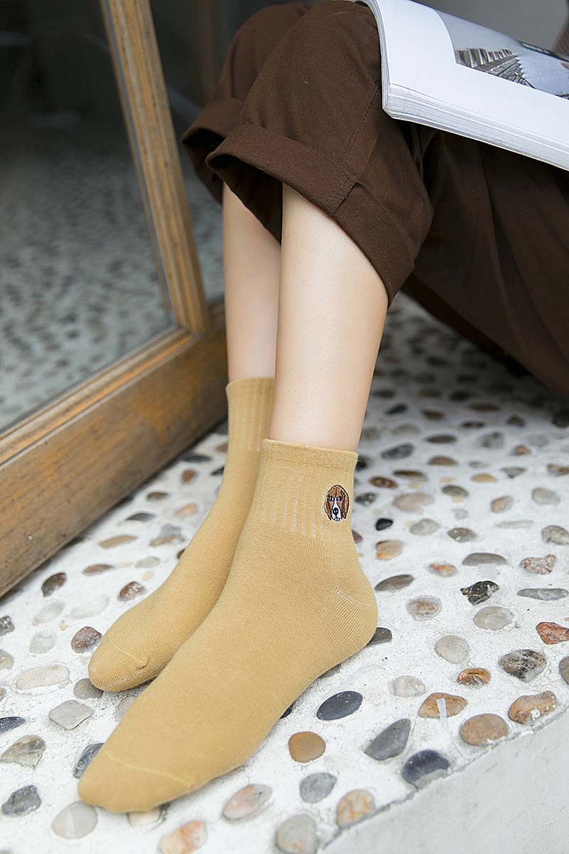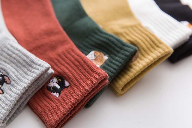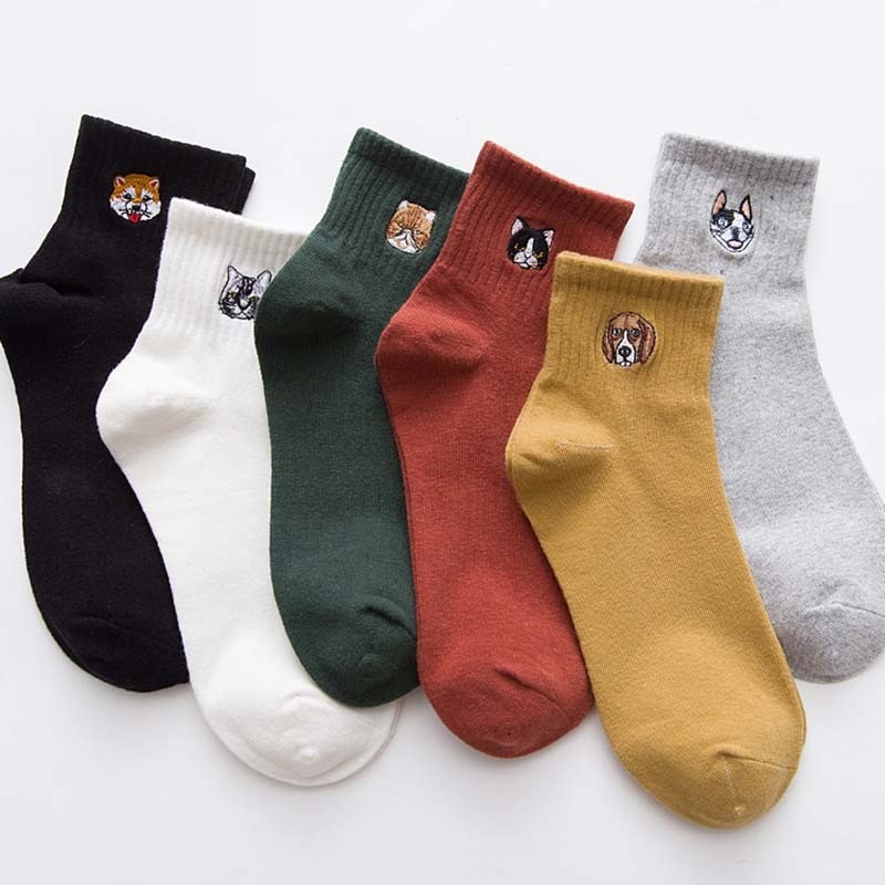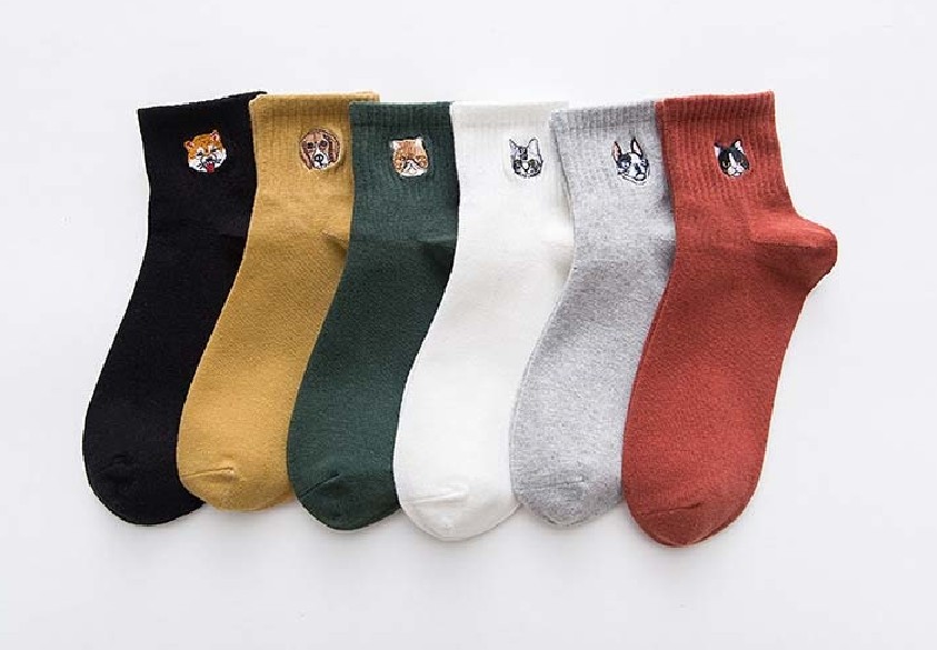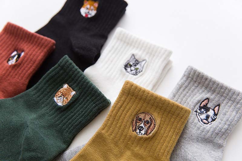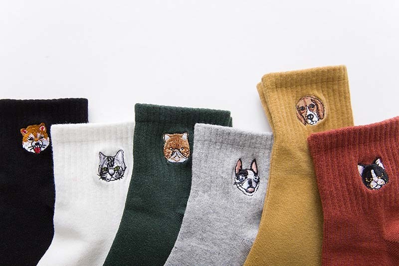 Οι κάλτσες έχουν στην επάνω πλευρά κεντημένες μίνι εικόνες σκύλων και γατών.