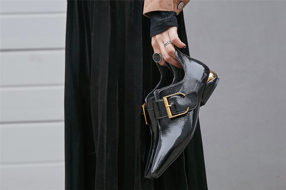 Οι μπαλαρίνες έχουν διακοσμημένο τακούνι και κλείνουν με αγκράφα.