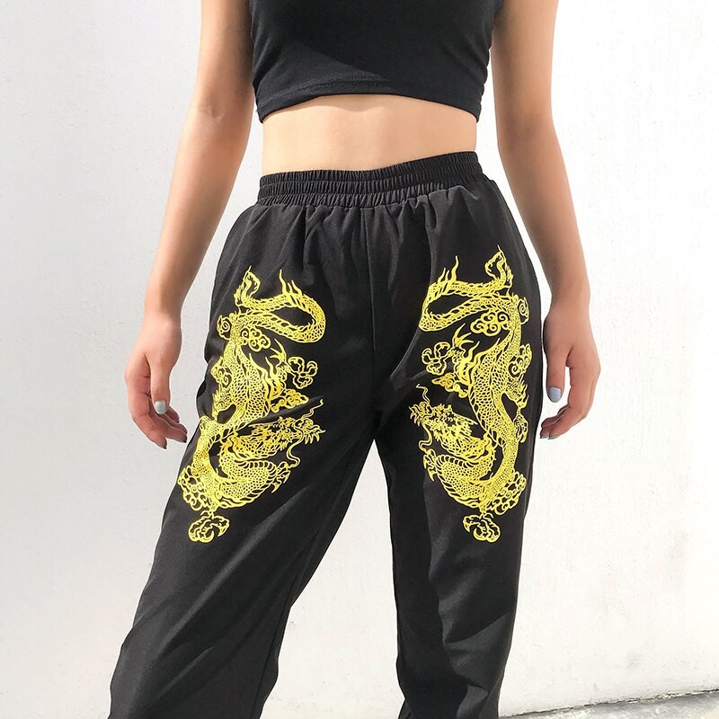 Γυναικείες παντελόνες με εκτύπωση δράκου
