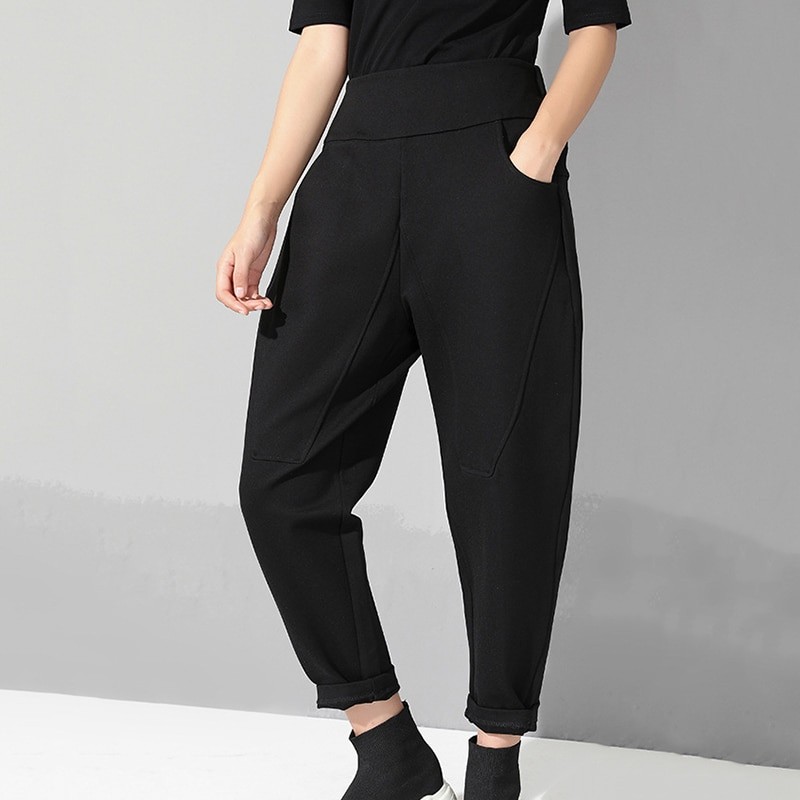 Γυναικείες παντελόνες με ελαστική μέση μαύρες