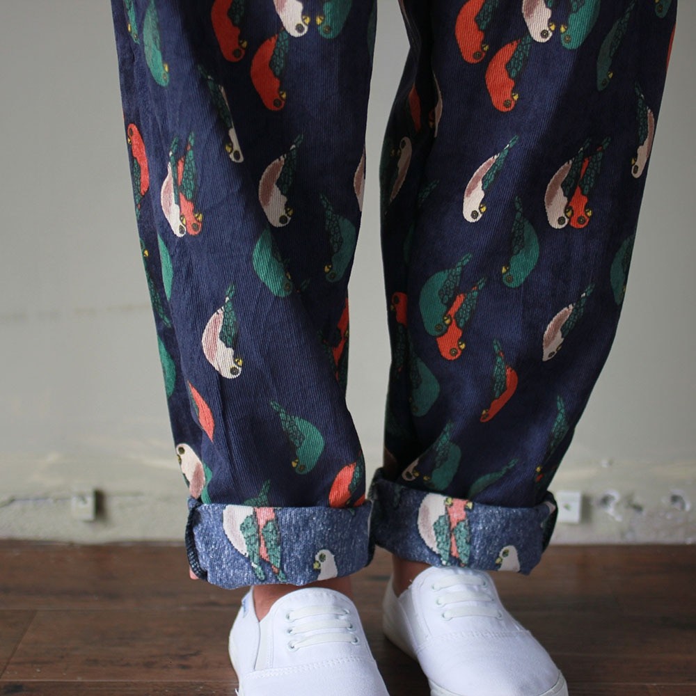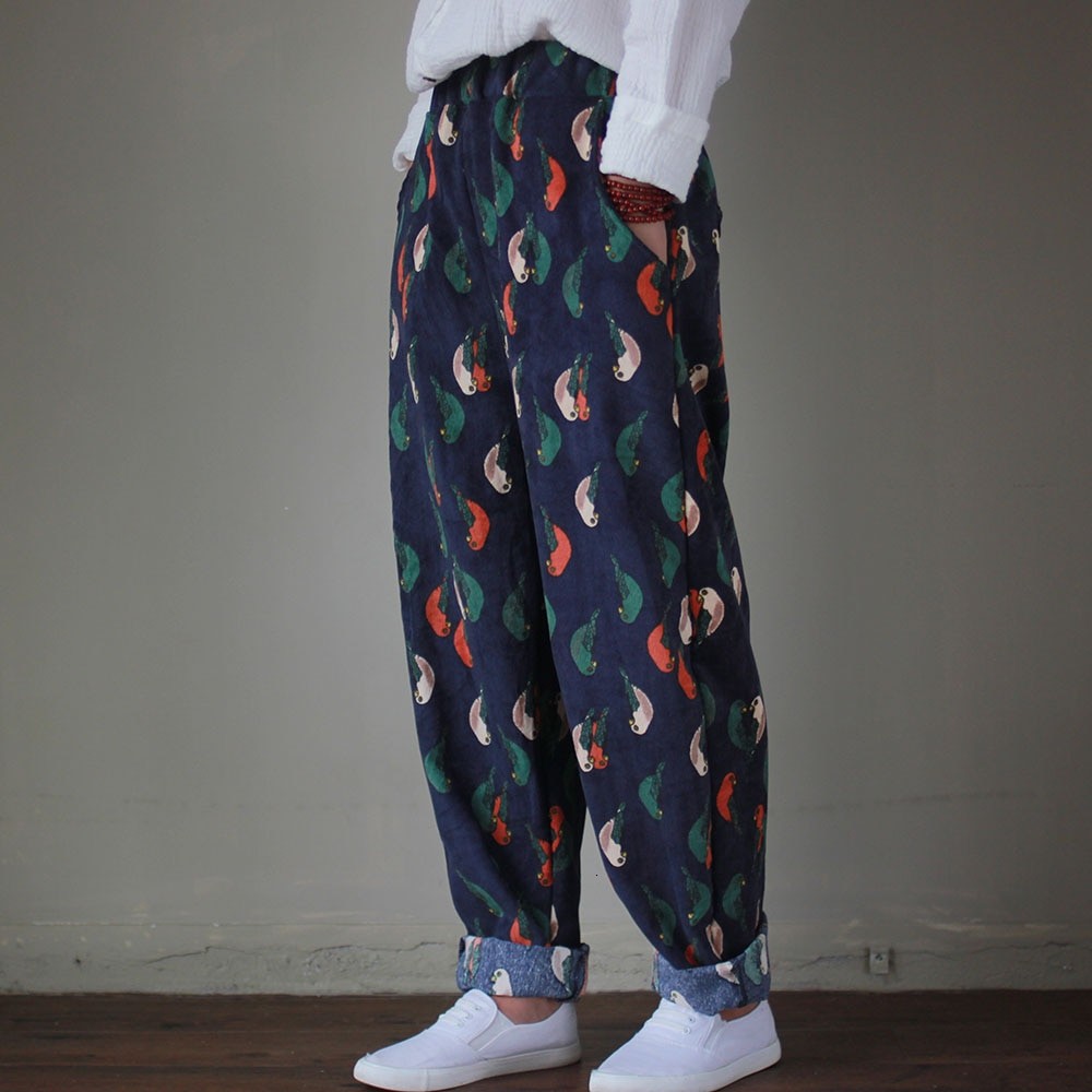 Γυναικείες παντελόνες με σχέδιο πουλιών