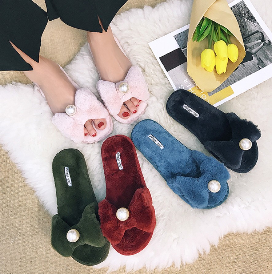 Αυτές οι υπέροχες παντόφλες με φιόγκο και πέρλα είναι πολύ χαριτωμένες.