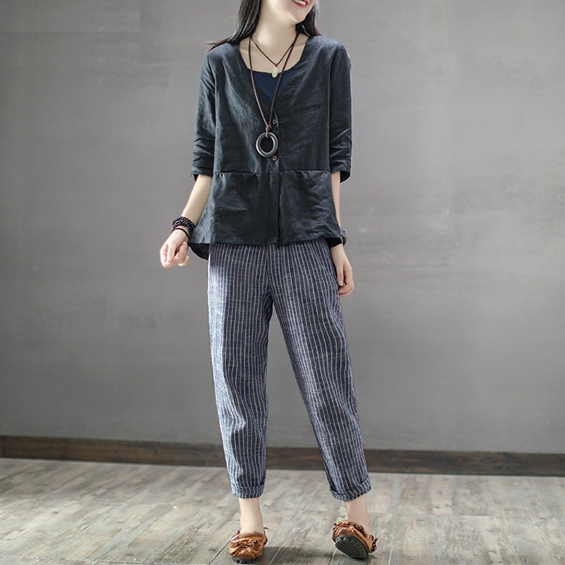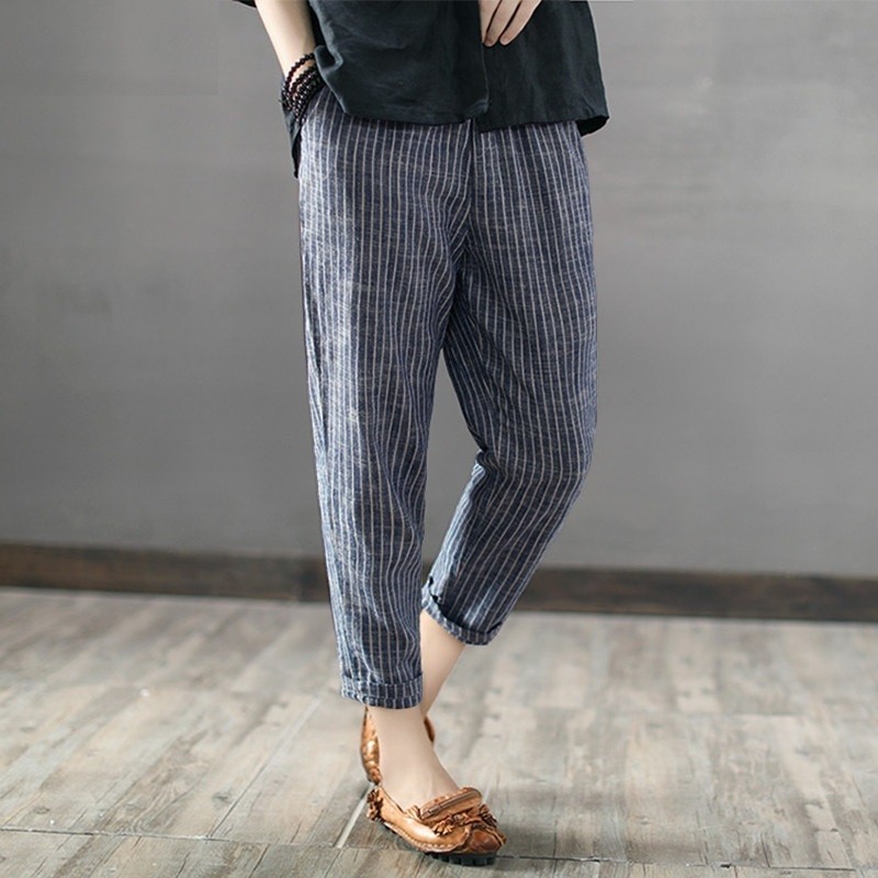Γυναικείες ριγέ παντελόνες με ελαστική μέση