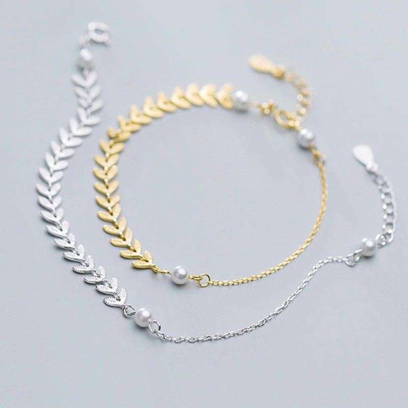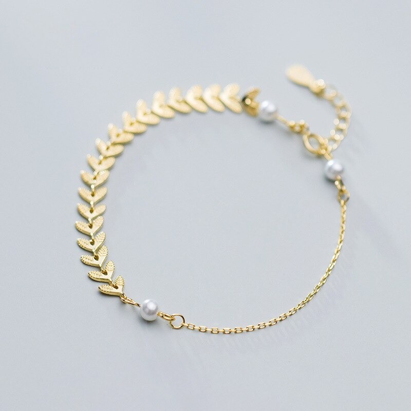 Γυναικείο βραχιόλι αλυσίδας με πέρλες και φύλλα