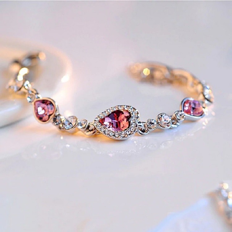 Γυναικείο βραχιόλι με πέτρες και καρδιές