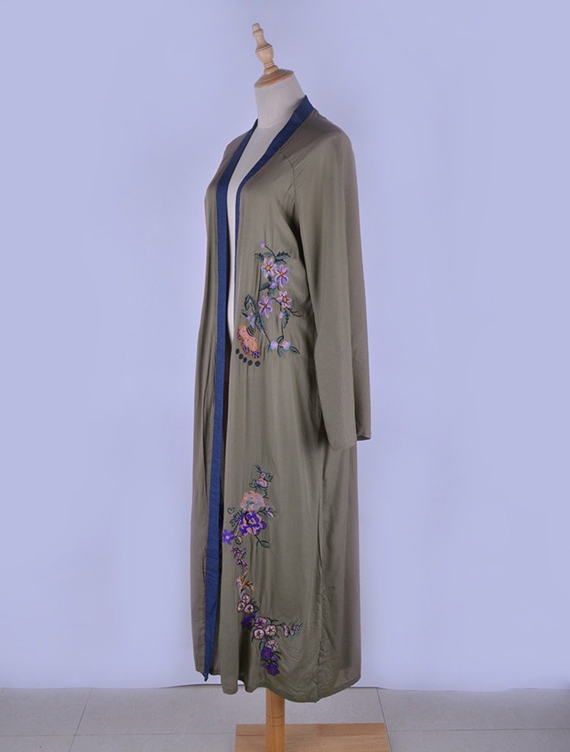 Κομψό μακρύ παλτό χακί χρώματος.