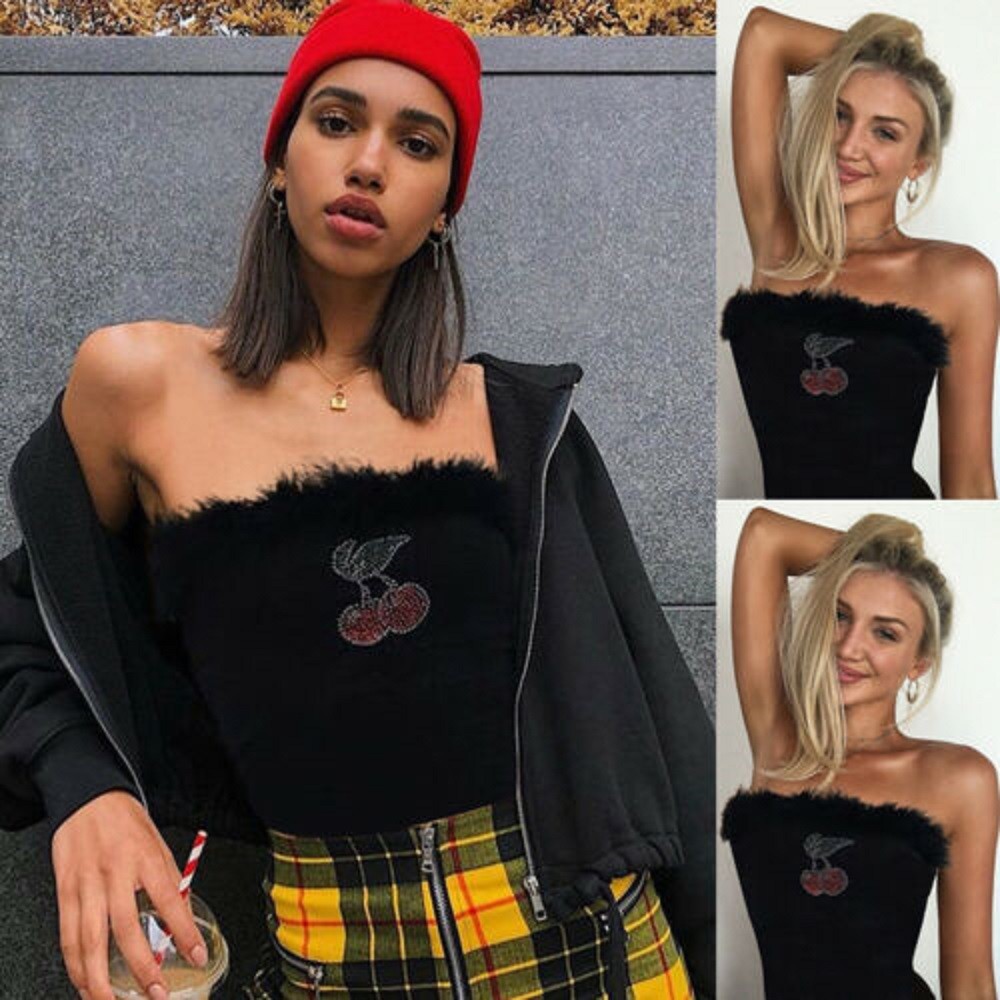 Γυναικείο χνουδωτό crop top μαύρο