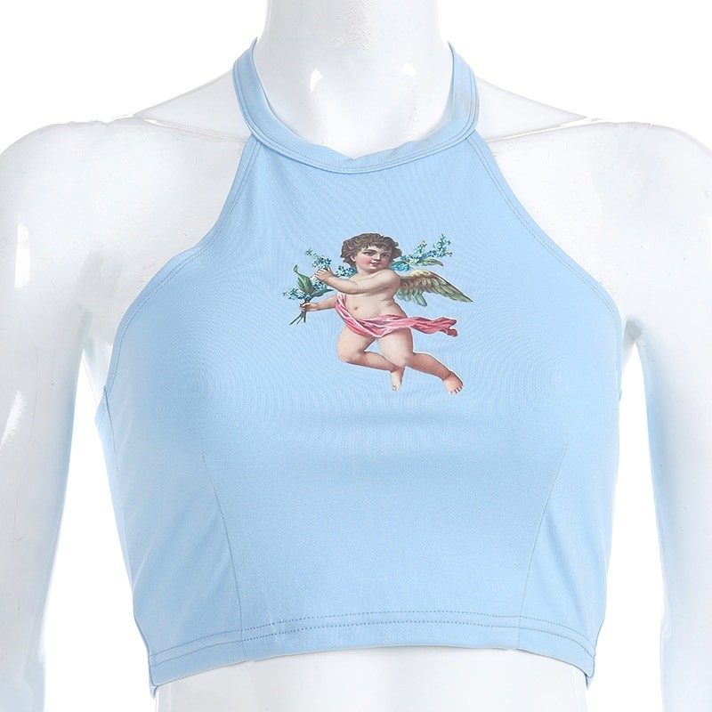 Γυναικείο crop top με εκτύπωση αγγέλου