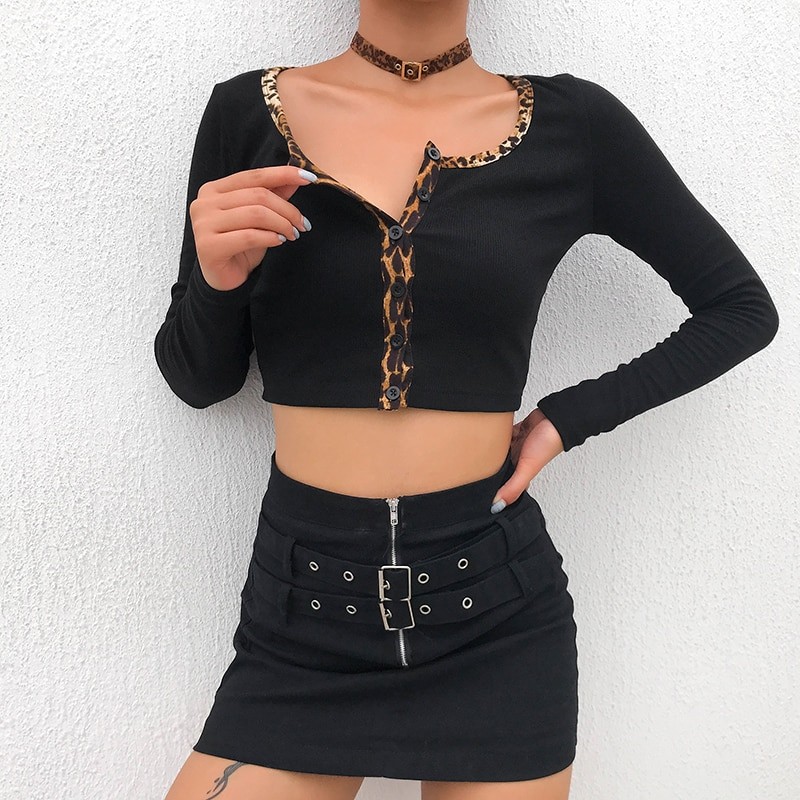 Γυναικείο crop top με λεοπάρ σχέδιο