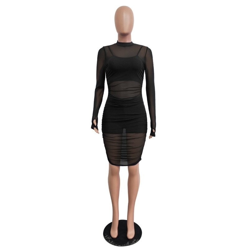 Γυναικείο crop top, σορτς και διαφανές φόρεμα