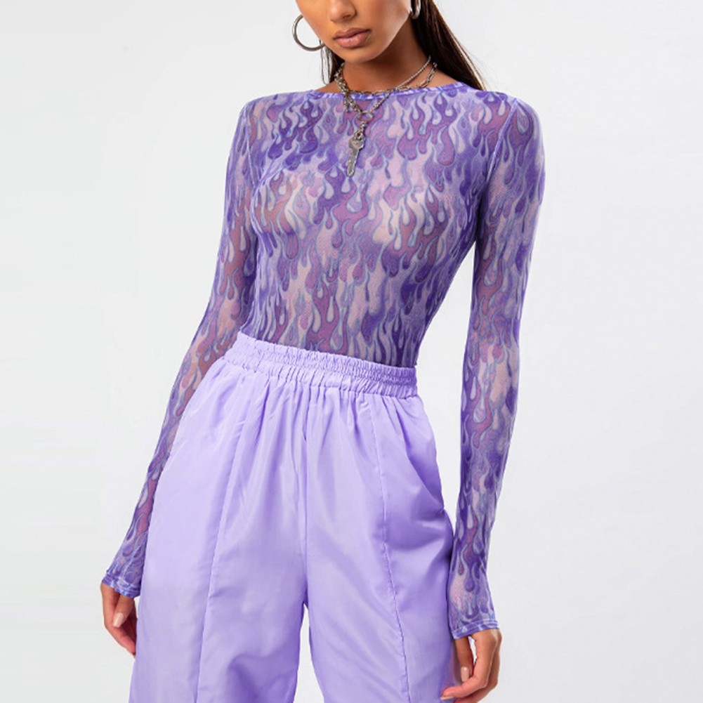 Γυναικείο διαφανές μπλουζάκι μωβ