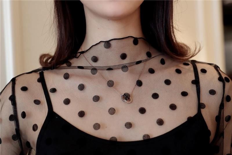 Γυναικείο διαφανές τοπ με μακριά μανίκια
