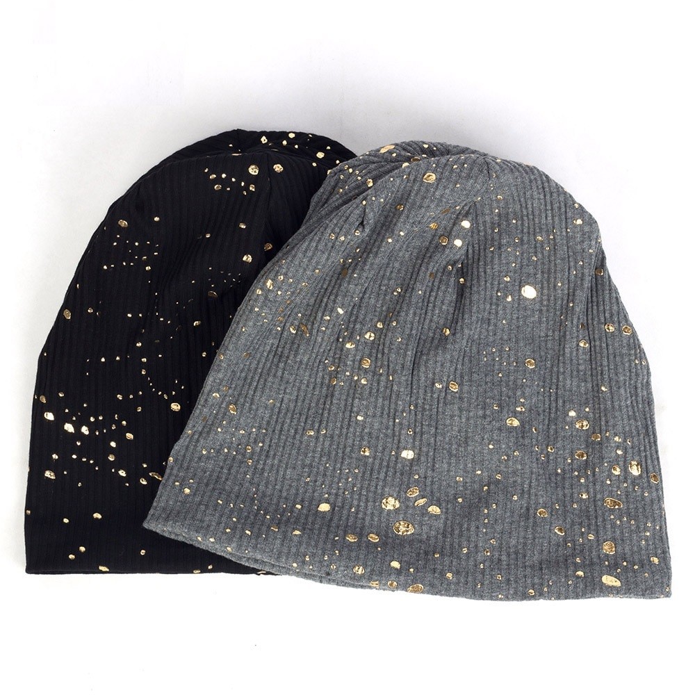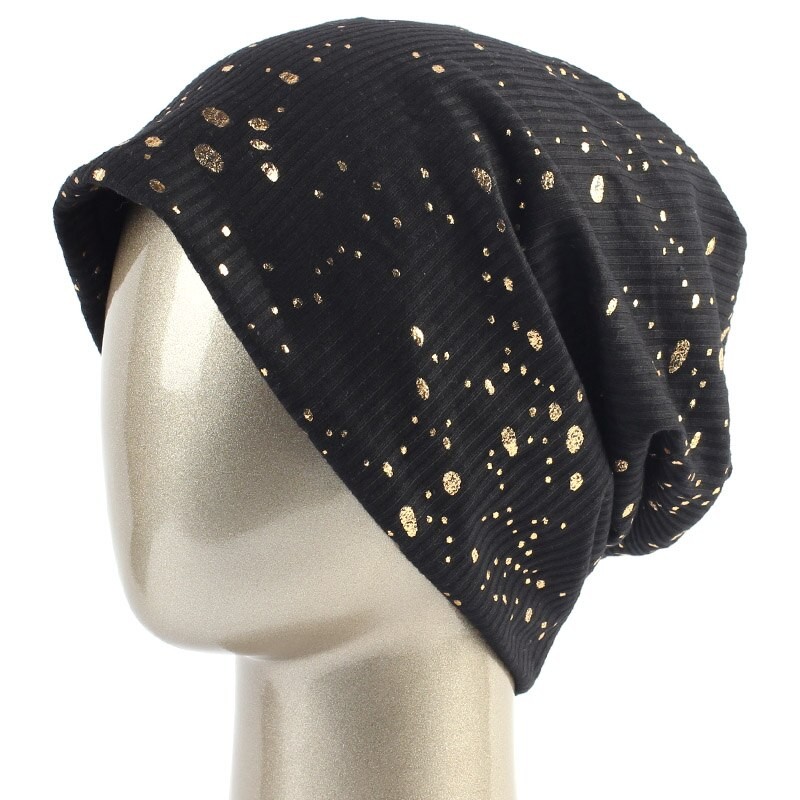 Μοντέρνο γυναικείο καπέλο beanie με χρυσές σταγόνες.