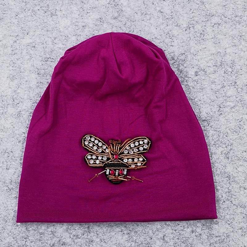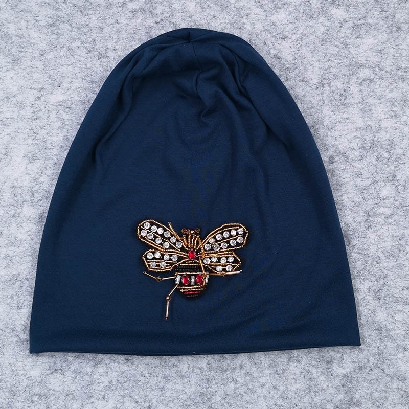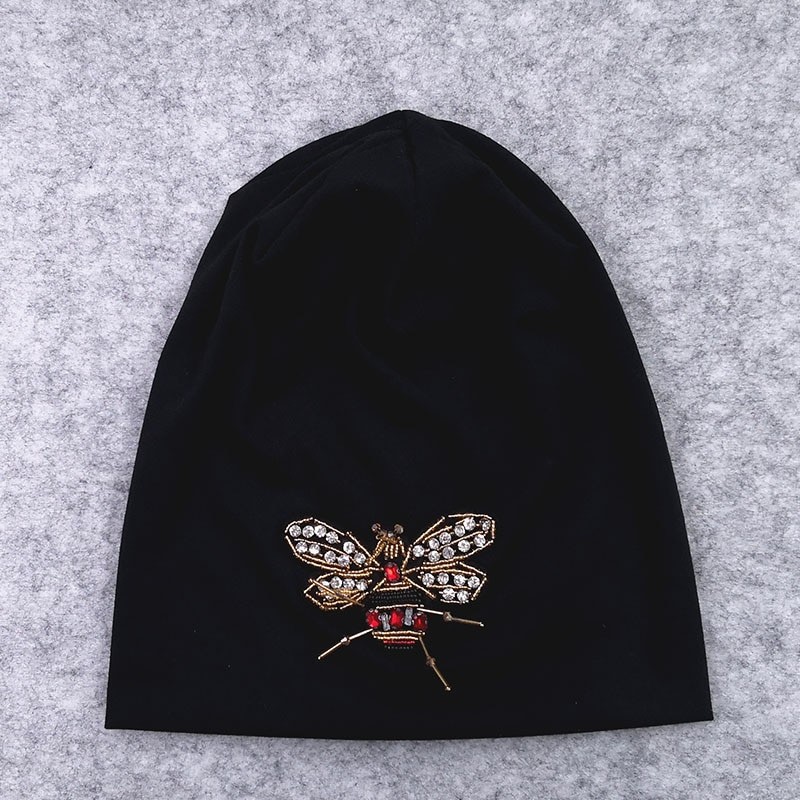 Αραιό γυναικείο καπέλο με κεντημένη μέλισσα από χάντρες.