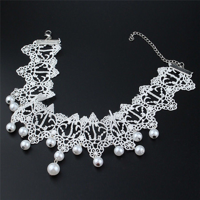 Γυναικείο κολιέ από δαντέλα με πέρλες