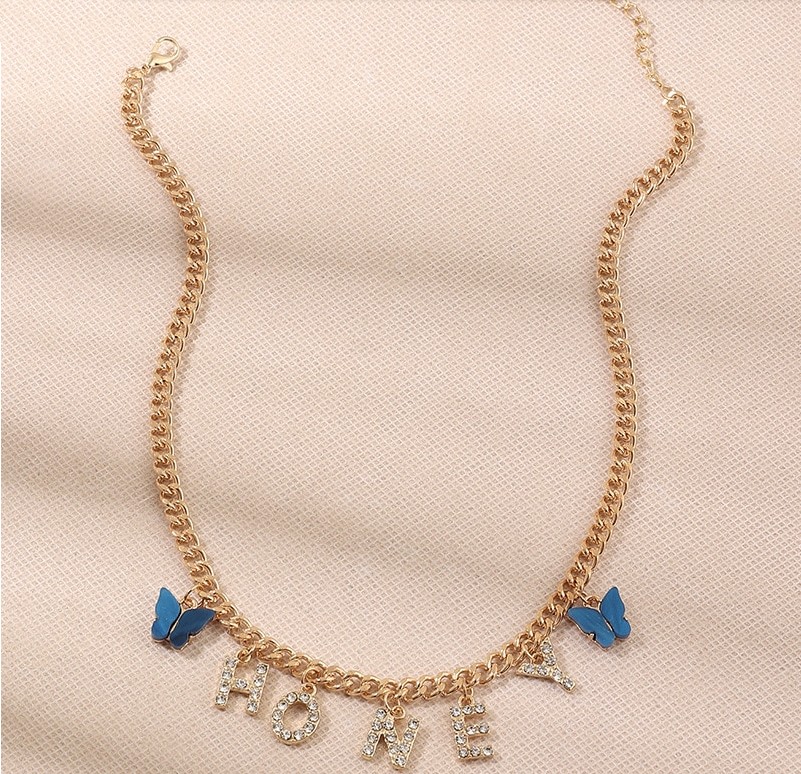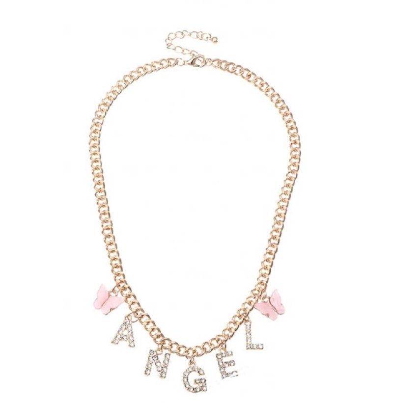 Γυναικείο κολιέ με επιγραφή και πεταλούδες