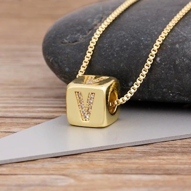 Γυναικείο κολιέ με γράμμα σε κύβο