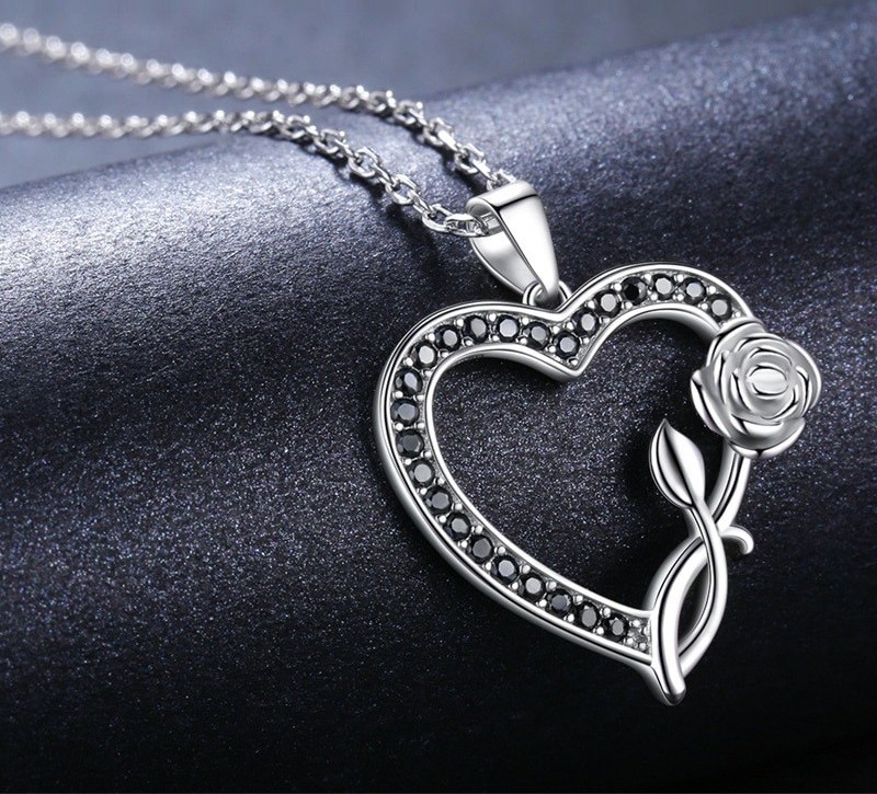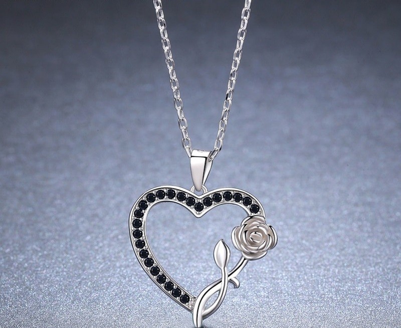 Γυναικείο κολιέ με καρδιά και τριαντάφυλλο