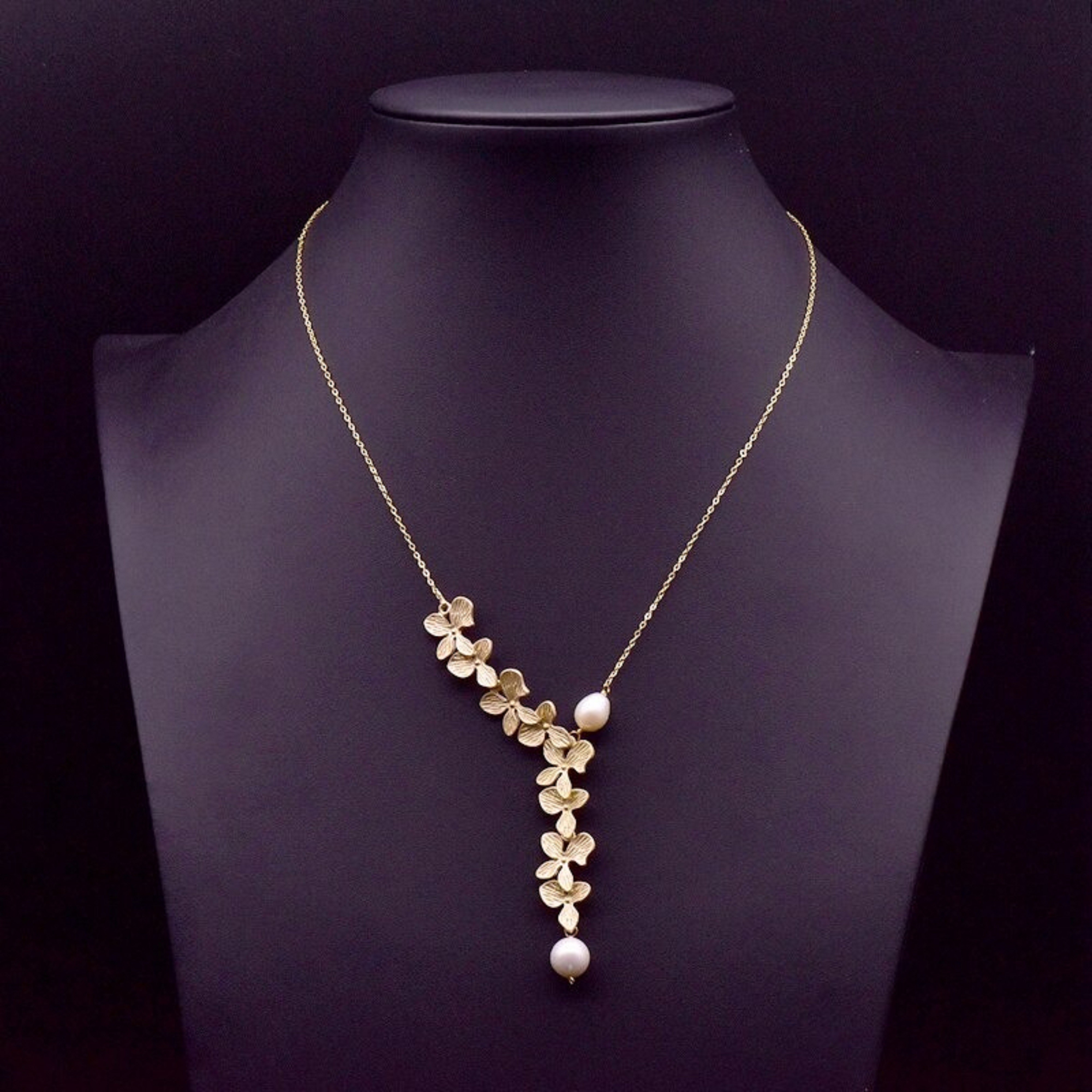 Γυναικείο κολιέ με λουλούδια και πέρλες