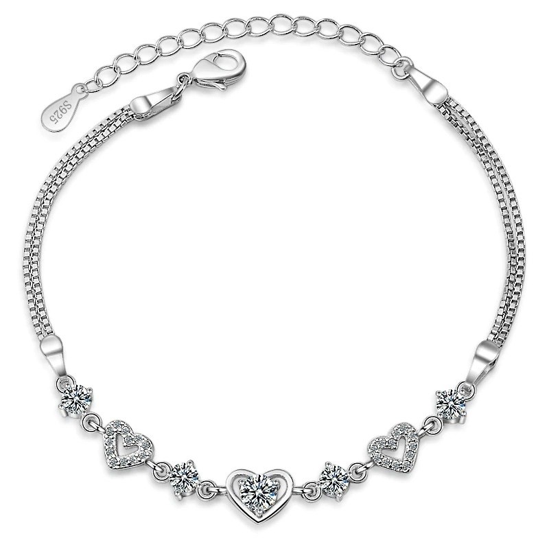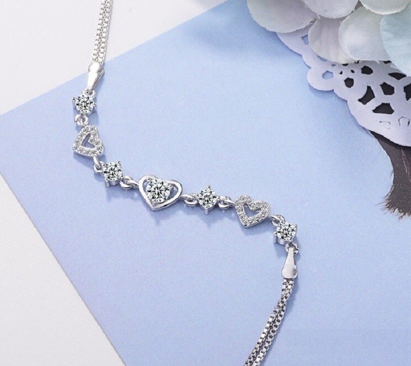 Γυναικείο λαμπερό βραχιόλι καρδιά και πετράδια