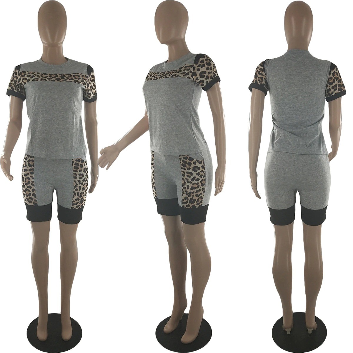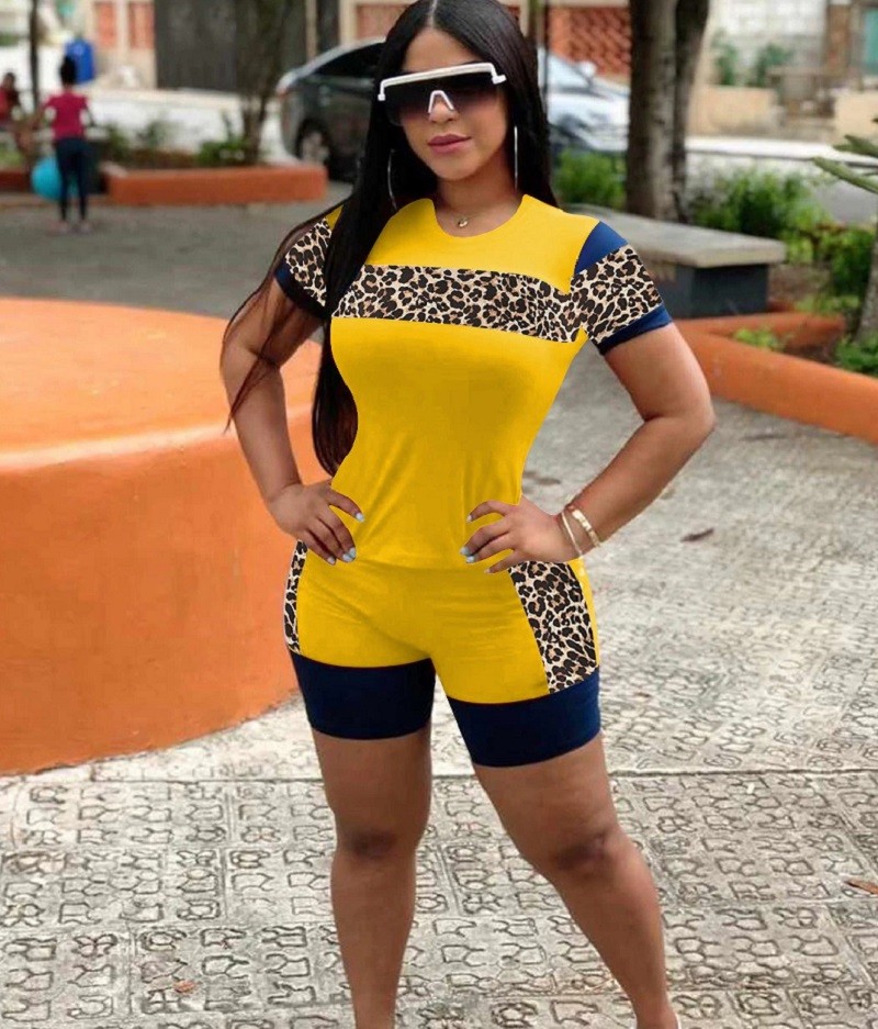 Γυναικείο λεοπάρ μπλουζάκι και σορτσάκι B979