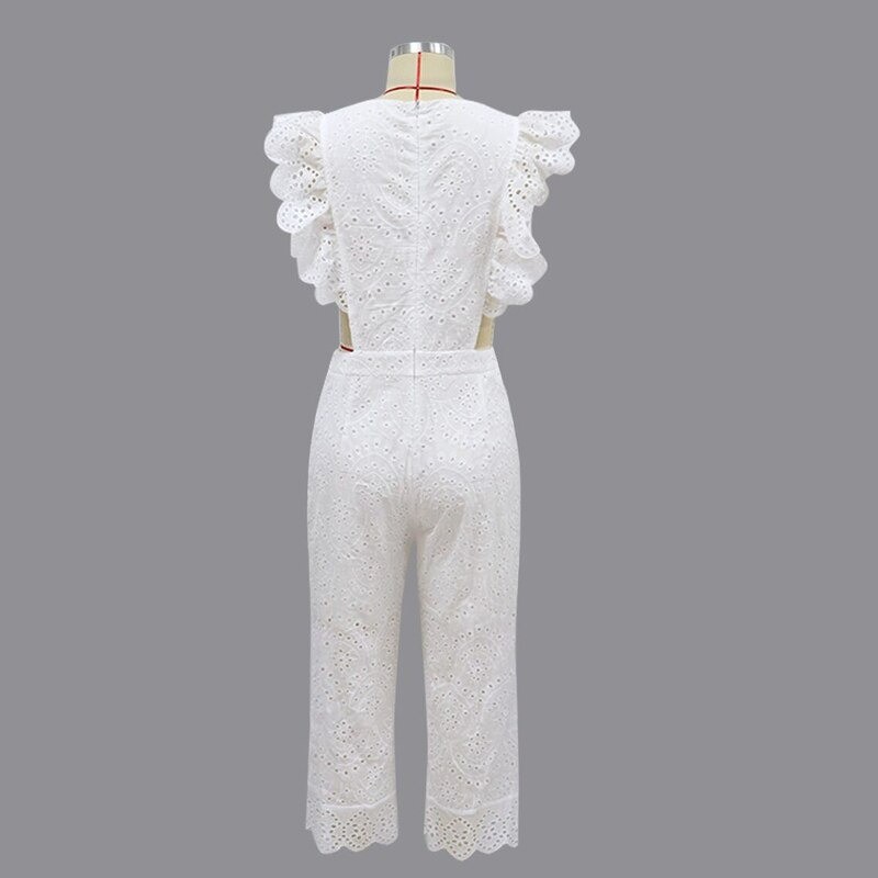 Γυναικείο λευκό δαντελωτό ολόσωμο φόρεμα