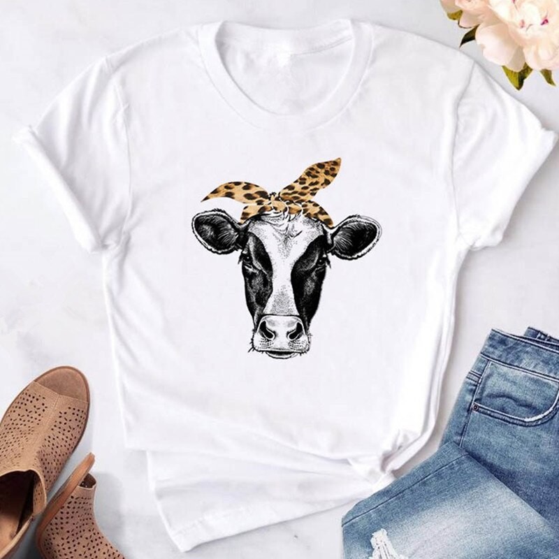Γυναικείο λευκό μπλουζάκι με τύπωμα αγελάδας