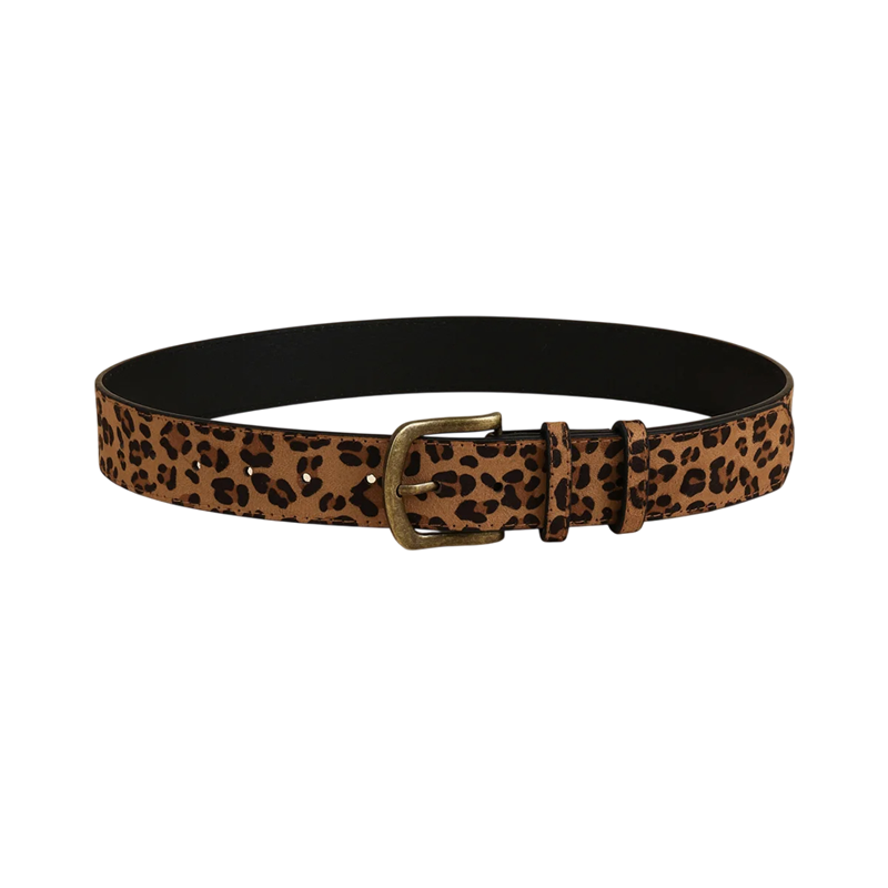 Στυλάτη γυναικεία ζώνη με έντονο σχέδιο λεοπάρδαλης και μεταλλική αγκράφα, ιδανική για τζιν, φορέματα και παλτό. Μήκος 105 εκ., πλάτος 3,7 εκ. Πλήρης περιγραφή