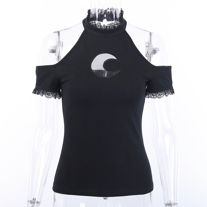 Γυναικείο μπλουζάκι με ανοιχτούς ώμους μαύρο