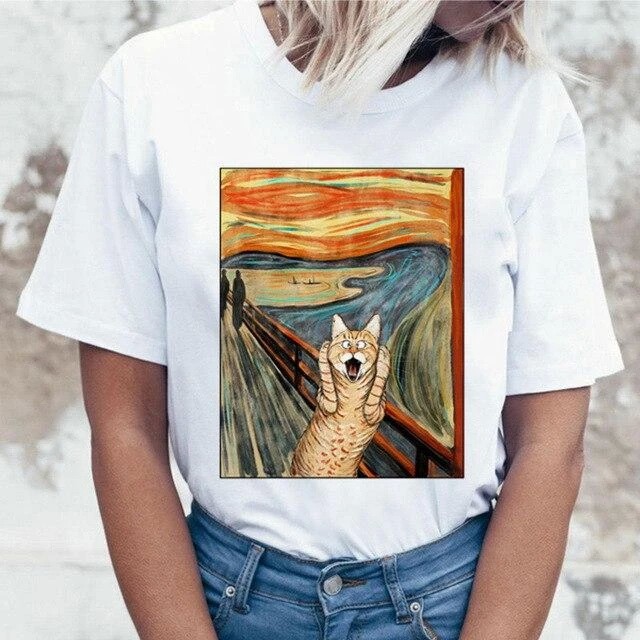 Γυναικείο μπλουζάκι με αστεία εκτύπωση γάτας