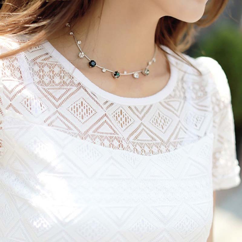 Όμορφο γυναικείο μοντέρνο μπλουζάκι με δαντέλα.