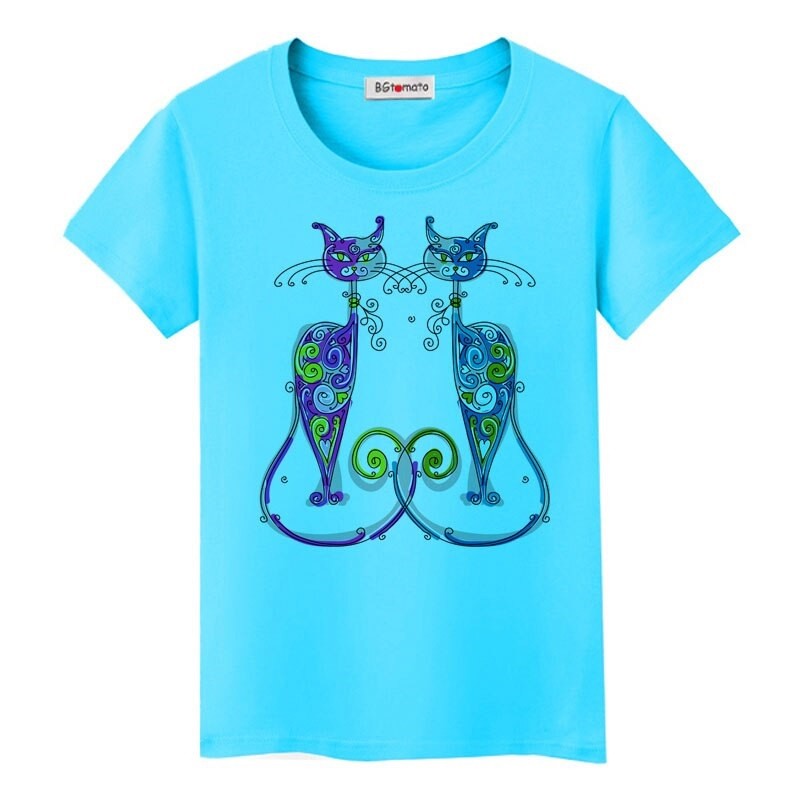 Γυναικείο μπλουζάκι με εκτύπωση γατών B385