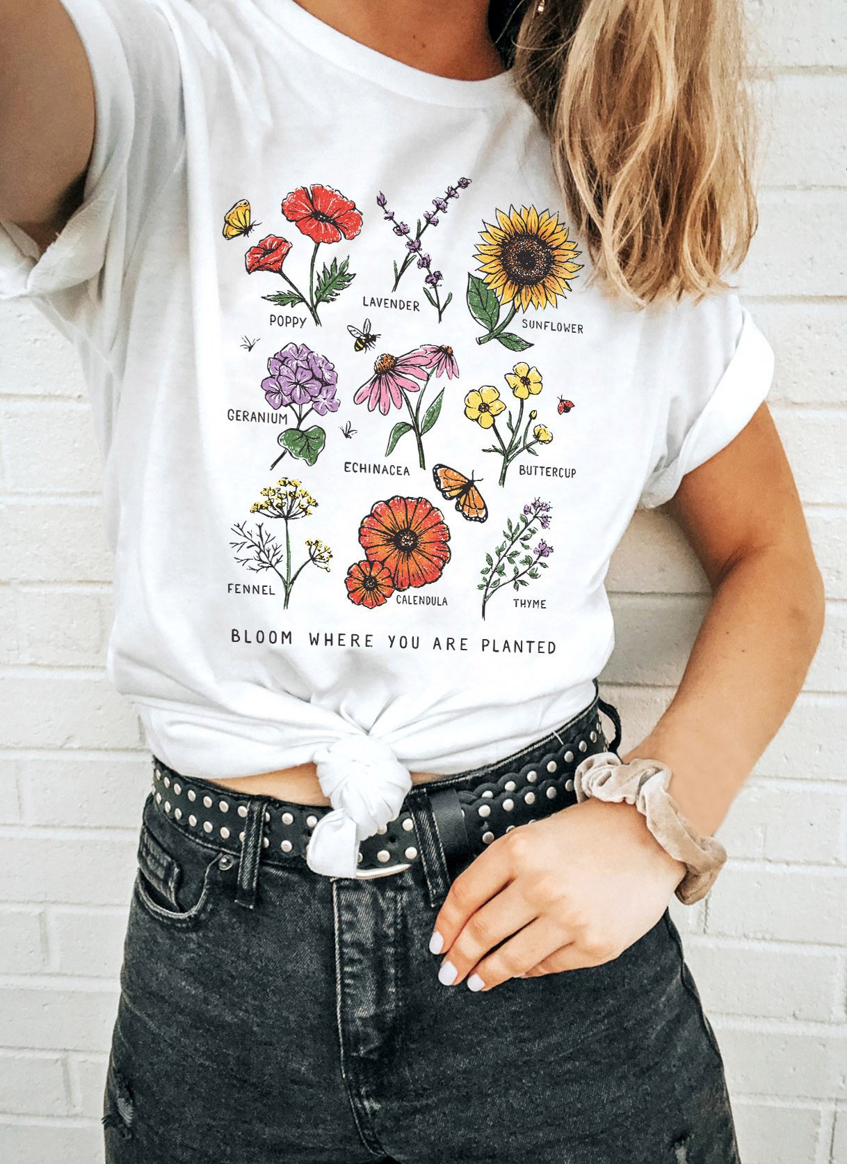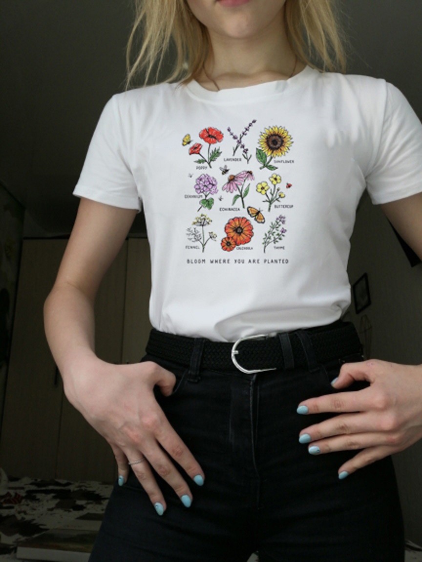 Γυναικείο μπλουζάκι με εκτύπωση λουλουδιών