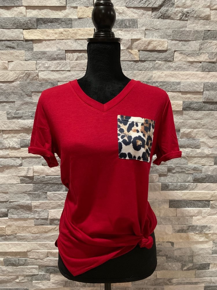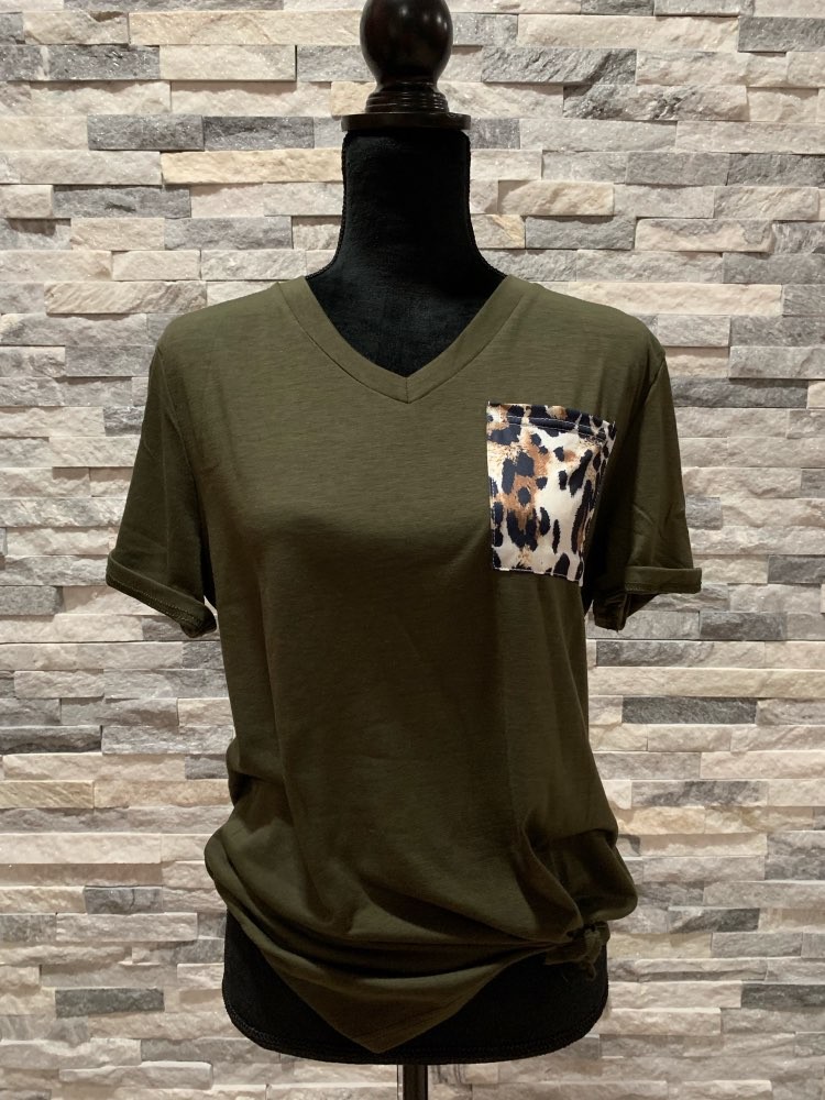 Γυναικείο μπλουζάκι με λεοπάρδαλη τσέπη