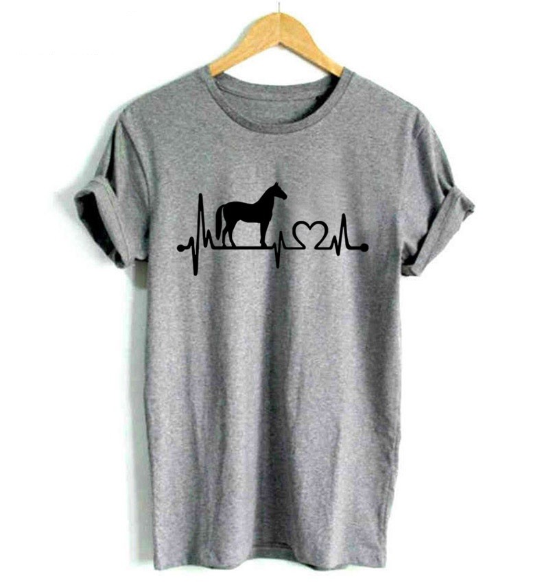 Όμορφο γυναικείο μπλουζάκι για όλους τους λάτρεις των αλόγων. Το μπλουζάκι έχει τύπωμα του τέπ και του αλόγου στην μπροστινή πλευρά.