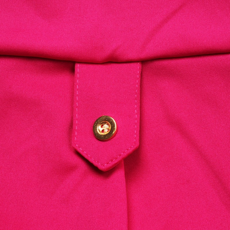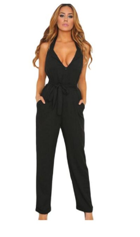 Το ολόσωμο έχει κοντά μανίκια, βαθύ ντεκολτέ σε σχήμα V και έρχεται με ζώνη.