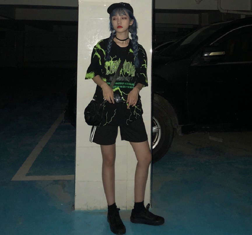 Γυναικείο oversized μπλουζάκι με αστραπές