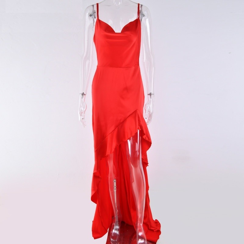 Μακρύ γυναικείο φόρεμα με λεπτές τιράντες.