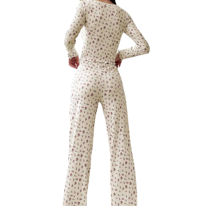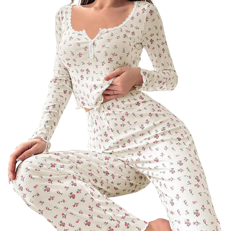Αυτό το πιτζάμα σύνολο είναι ιδανική επιλογή για γυναίκες που θέλουν να συνδυάσουν κομψότητα με καθημερινή άνεση. Χάρη στο ελαφρύ μείγμα πολυεστέρα και σπάντεξ είναι ευχάριστο στη χρήση και προσαρμόζεται εύκολα στο σώμα. Το λεπτό λουλουδάτο σχέδιο προσθέτει ρομαντική αίσθηση στο σύνολο, ενώ η ελαστική μέση διασφαλίζει άνεση καθ' όλη τη διάρκεια της νύχτας. Το πιτζάμα είναι όχι μόνο στυλάτο, αλλά και πρακτικό – εύκολα πλένεται, γρήγορα στεγνώνει και διατηρεί τα χρώματα και το σχήμα του για μεγάλο χρονικό διάστημα. Είναι ιδανικό για γυναίκες όλων των ηλικιών που αναζητούν ποιοτικό, κομψό και άνετο σύνολο για καθημερινή χαλάρωση. Χάρη στην διακριτική του εμφάνιση, είναι επίσης εξαιρετική επιλογή για δώρο.