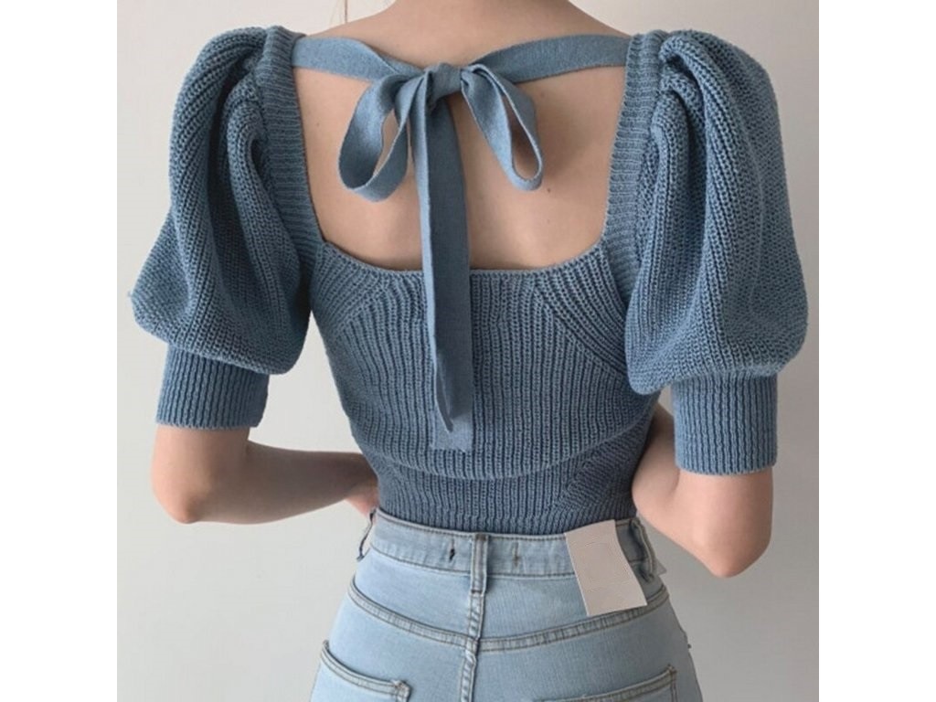 Γυναικείο πλεκτό τοπ με δέσιμο G376