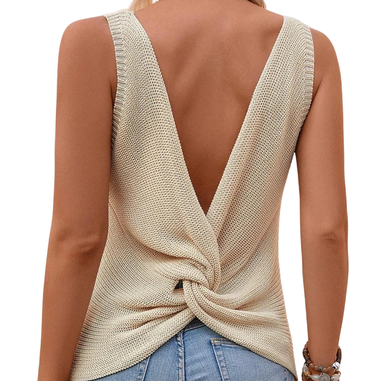 Γυναικείο πλεκτό τοπ με V ντεκολτέ Εντυπωσιακό καλοκαιρινό τοπ με κόμπο στην πλάτη Ανοιχτή πλάτη Μονοχρωματικό μοντέρνο τοπ Διαφορετικά χρώματα Πολυεστέρας