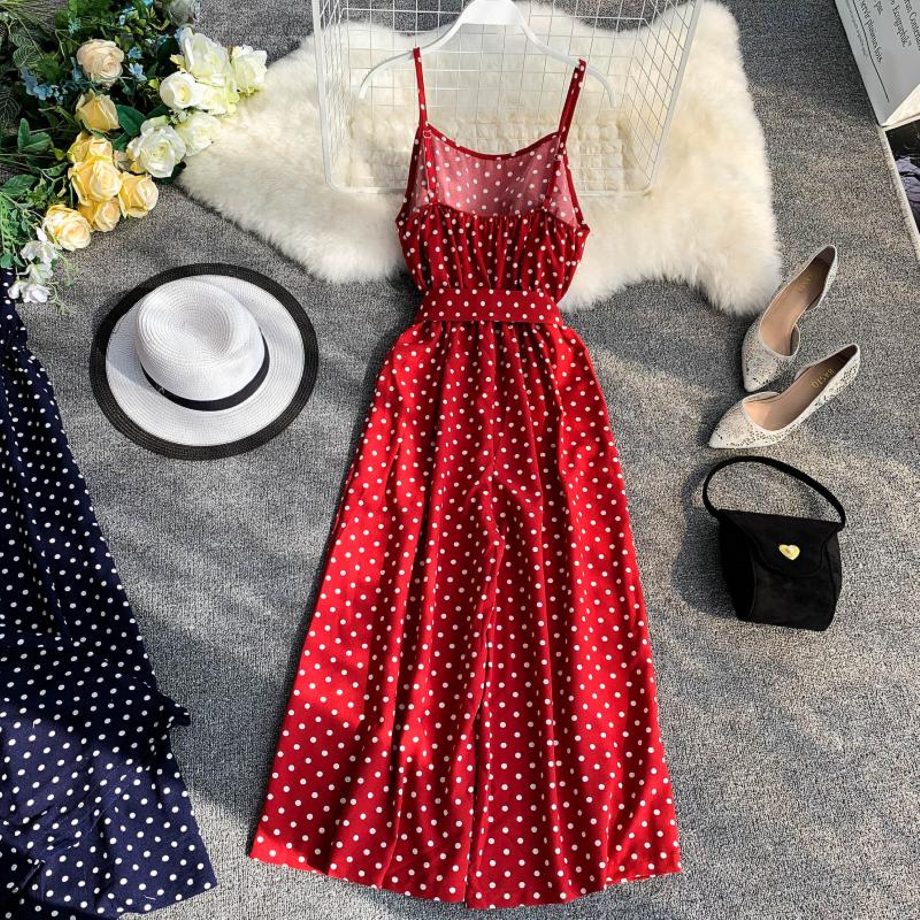 Γυναικείο πουά ολόσωμο φόρεμα με δέσιμο στη μέση
