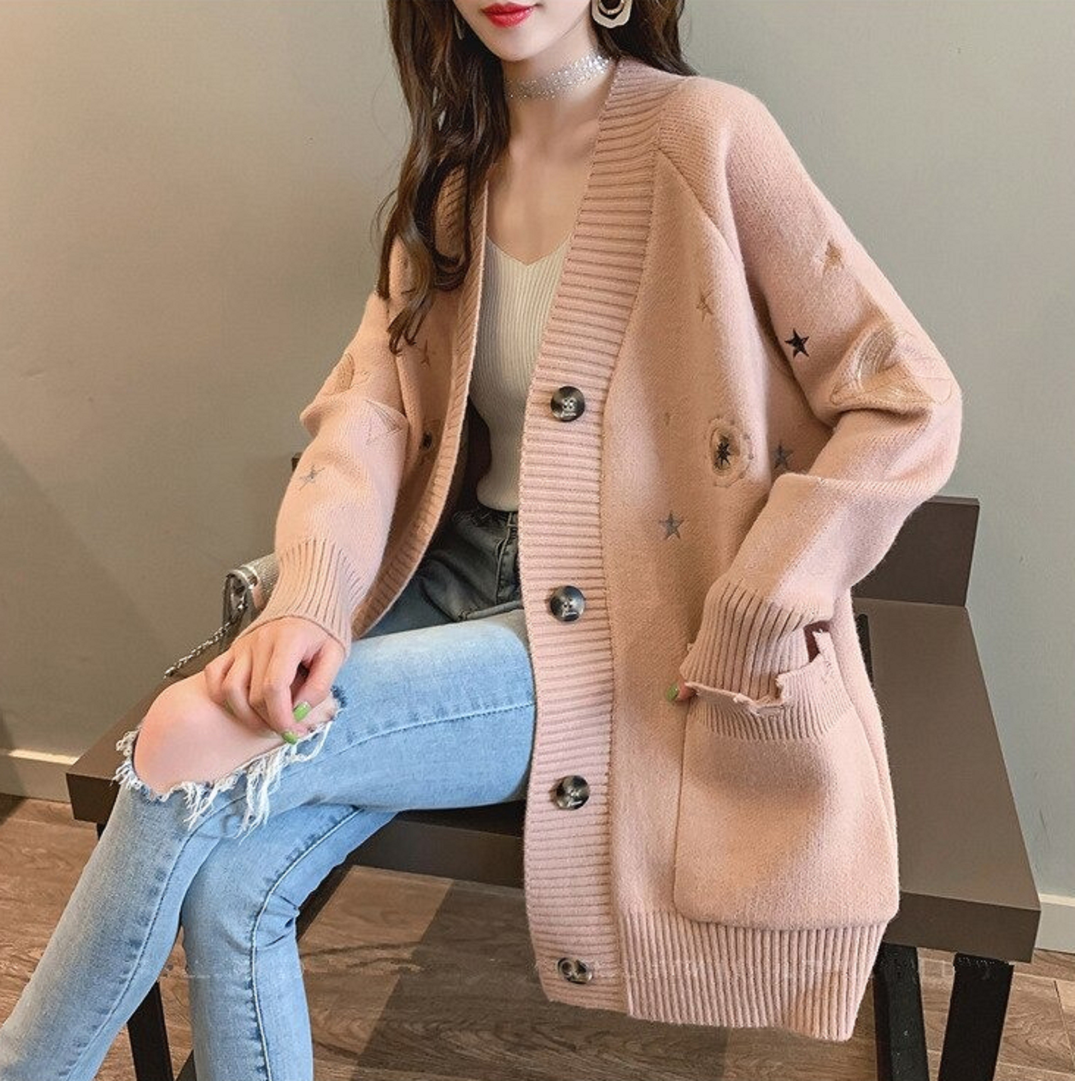 Γυναικείο πουλόβερ με κουμπιά και τσέπες