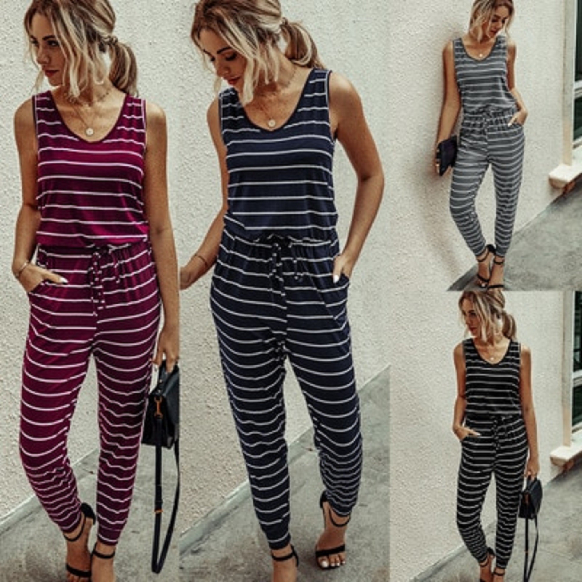 Γυναικείο ριγέ ολόσωμο φόρεμα