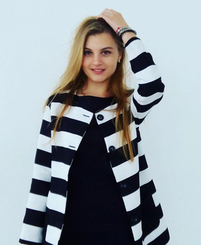 Το παλτό έχει μαύρες και άσπρες ρίγες.